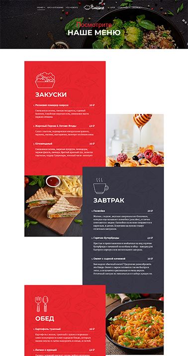 - меню и бронирование столиков в сфере питания;